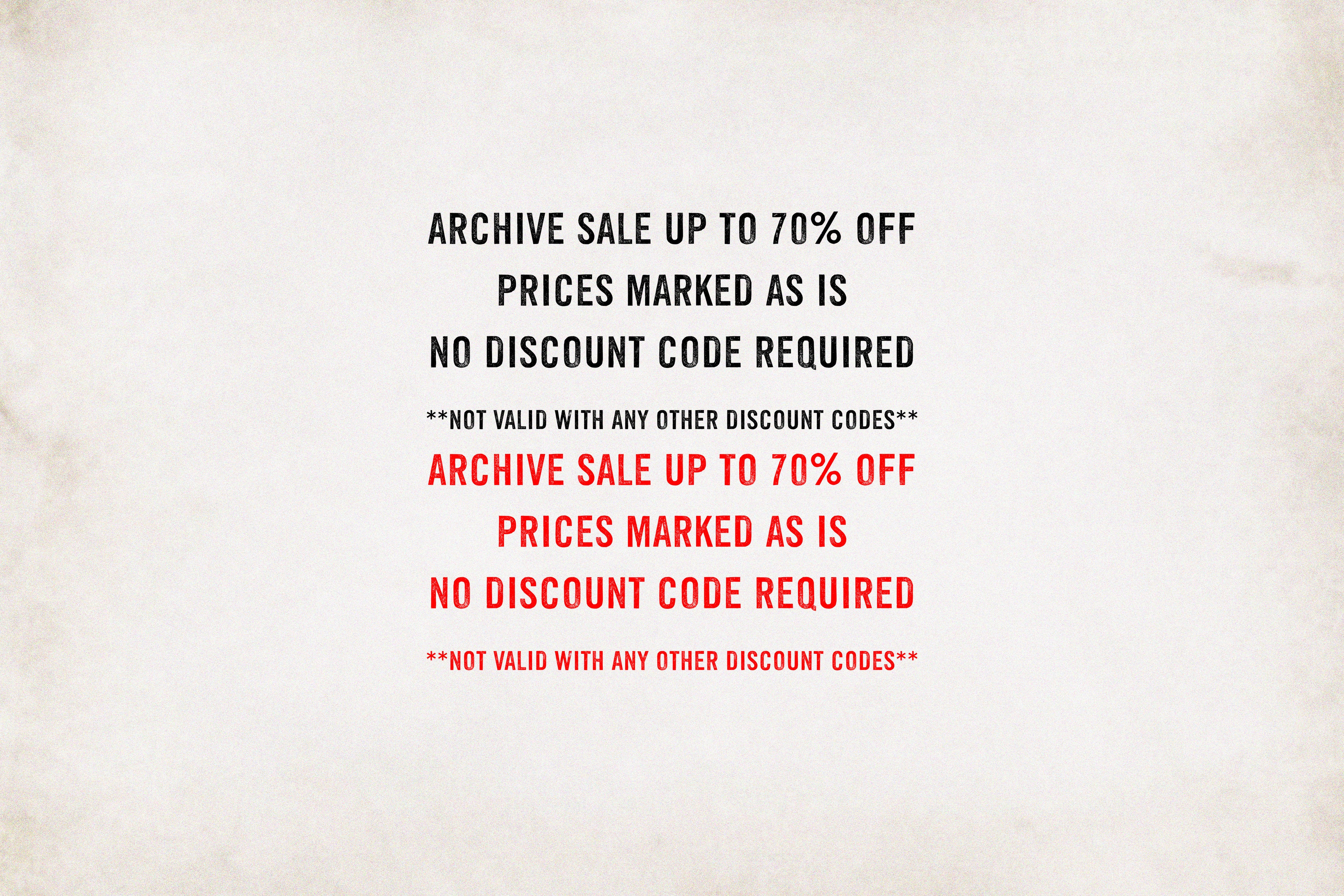 ARCHIVE SALE UP TO 70% OFF - PRICES MARKED AS IS - NO DISCOUNT CODE REQUIRED